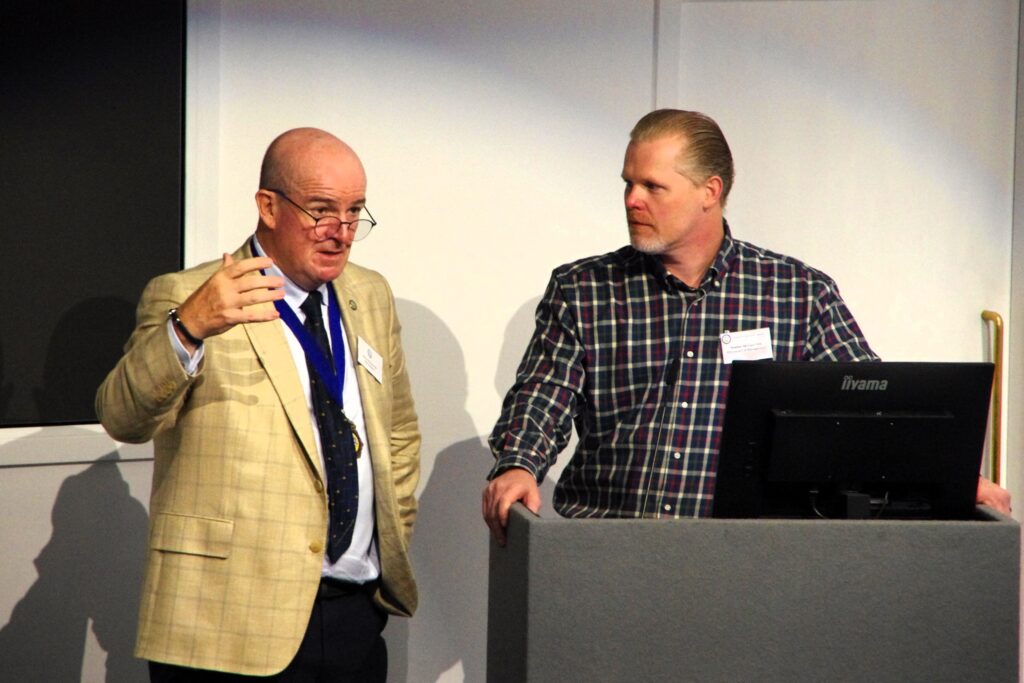 Next up was David Kocurek, pioneer of telescopic demolition rigs, who was accompanied by his niece Rebecca Kelly and received an honorary fellowship of the IDE from Adrian before his talk.